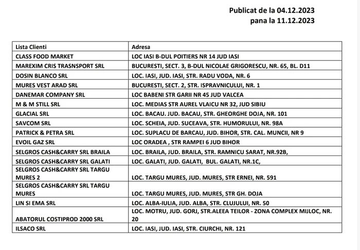 Găsiți mai jos lista magazinelor în care a fost distribuit produsul contaminat.