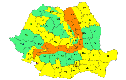 De asemenea, în aceeași perioadă, la altitudini de peste 1.600 de metri, în Carpații Orientali și Meridionali va intra în vigoare codul portocaliu de viscol.