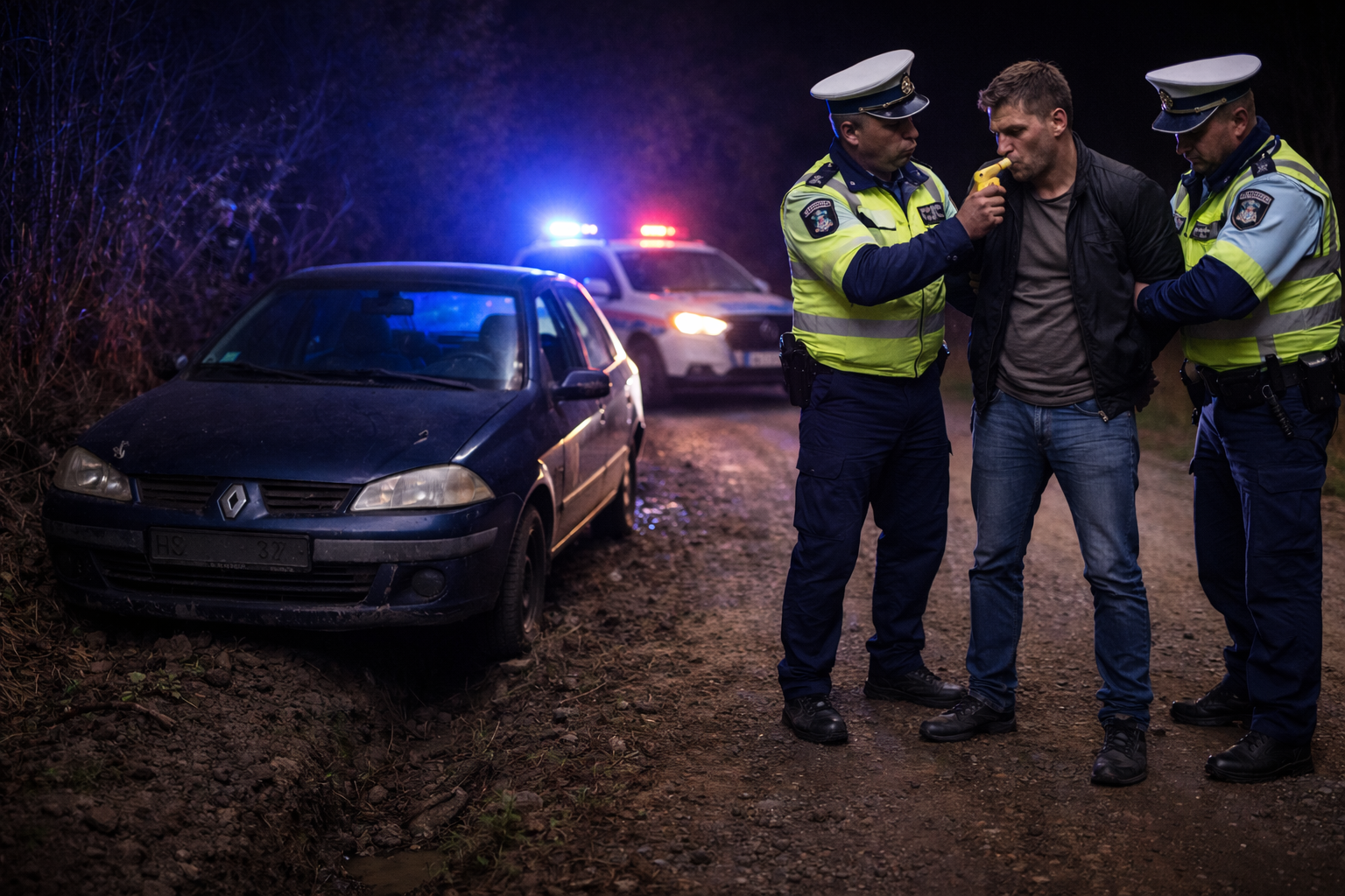 Testat cu aparatul etilotest, acesta avea o alcoolemie de 1,59 mg/l alcool pur în aerul expirat. Verificările au scos la iveală și alte probleme grave: bărbatul nu deținea permis de conducere, iar autoturismul era neînmatriculat, având plăcuțe false aparținând unui alt vehicul.