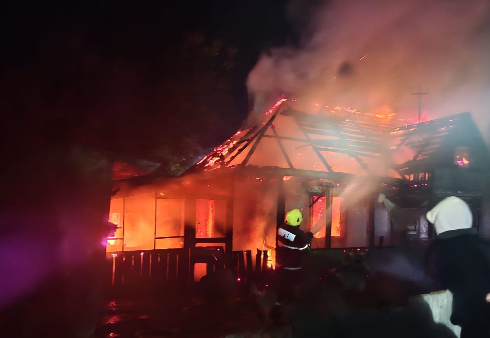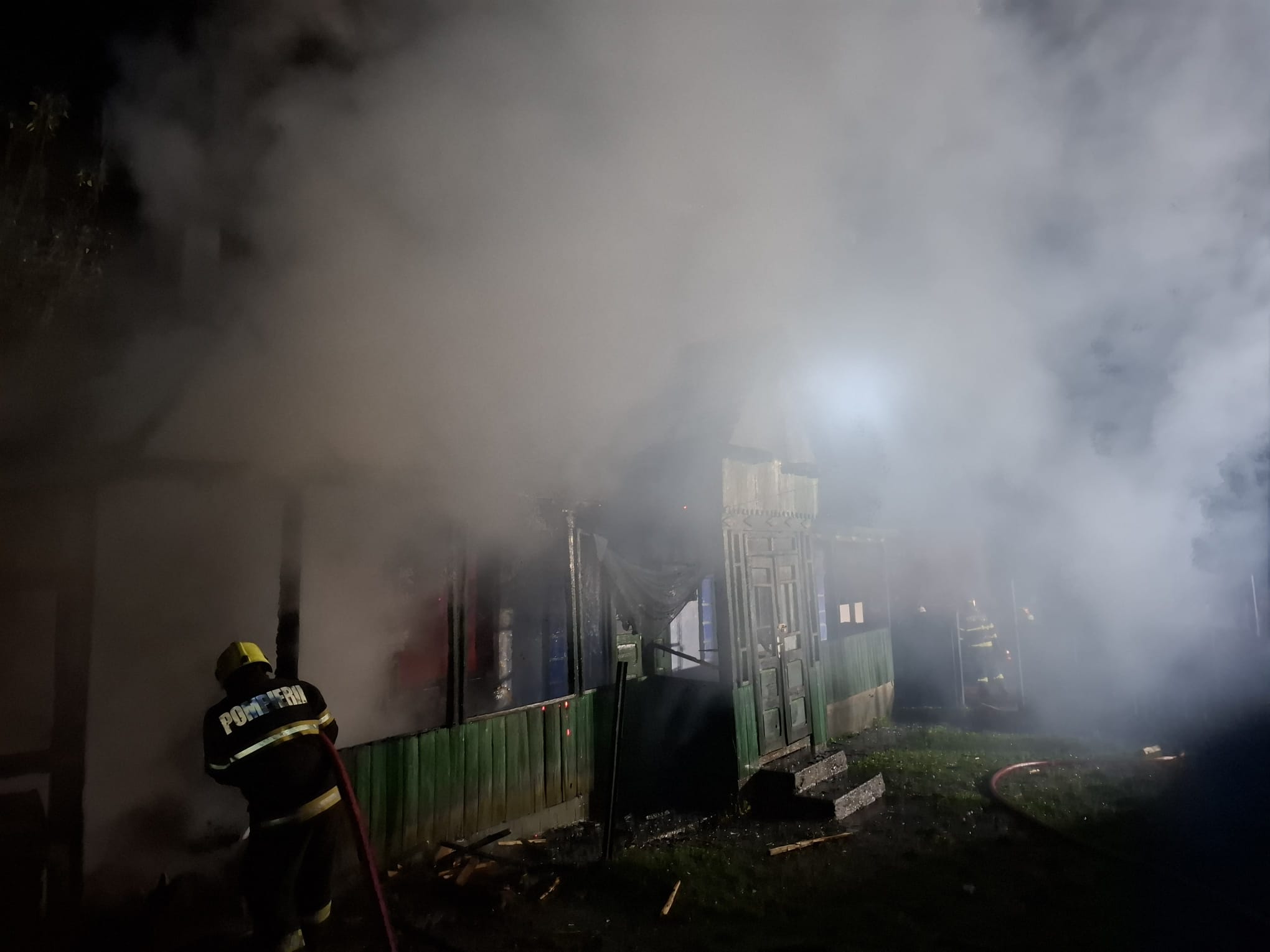 Casă făcută scrum la Drăgușeni, după ce proprietarul a adormit cu țigara aprinsă. Pompierii au reușit să salveze locuințele din jur