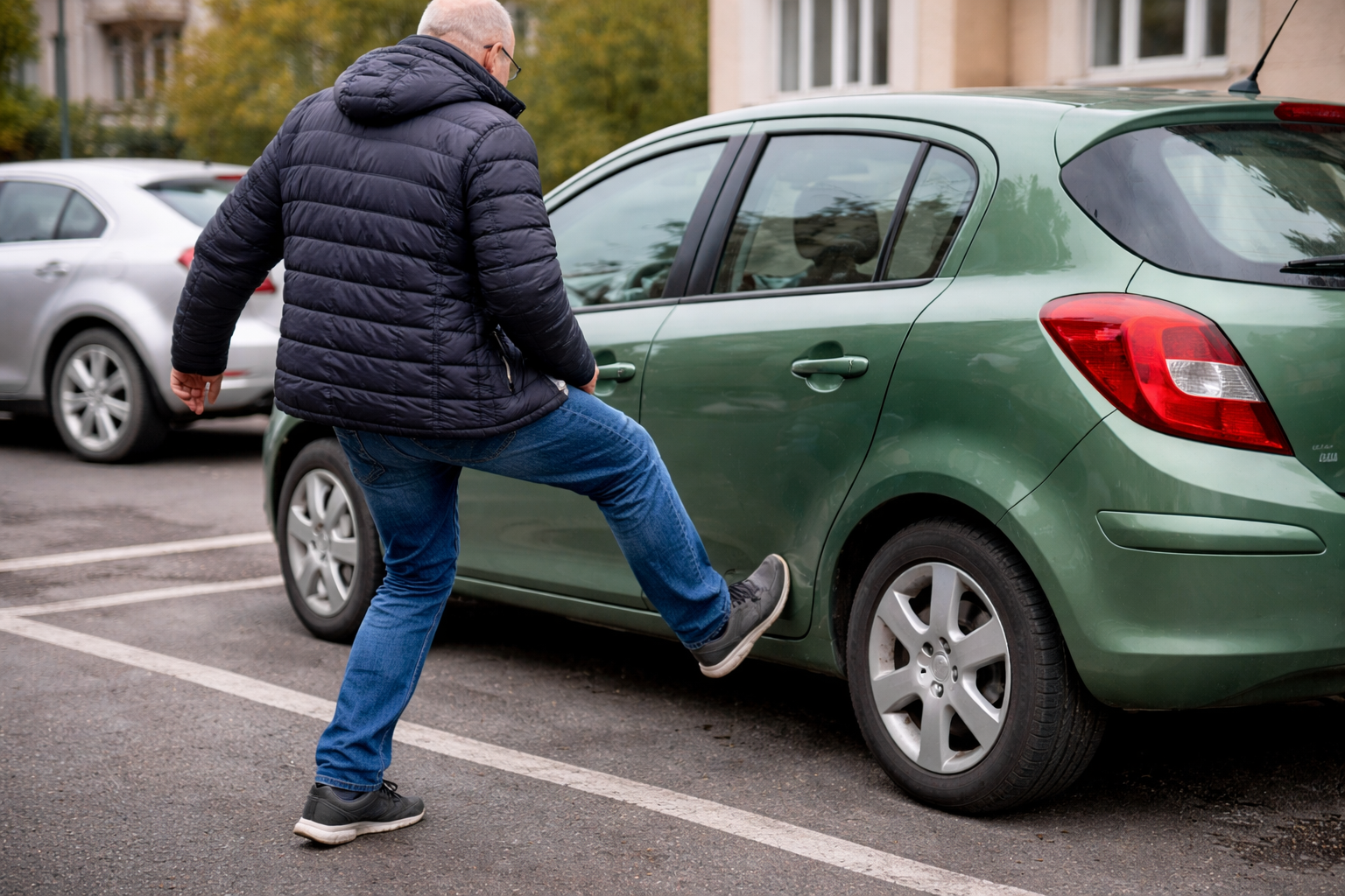 În aceeași zi, în jurul orei 16.50, bărbatul a observat pe imaginile surprinse de camerele de supraveghere că inculpatul se afla în apropierea autoturismului său. La un moment dat, acesta a lovit intenționat o singură dată cu piciorul portiera dreapta-spate a mașinii, declanșând alarma și provocând o zgârietură cu dimensiunea aproximativă de 10 cm x 6 cm.