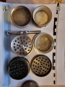 În urma perchezițiilor au fost descoperite și ridicate 166 grame rezină de canabis, trei dispozitive de mărunțire a drogurilor și un cântar.