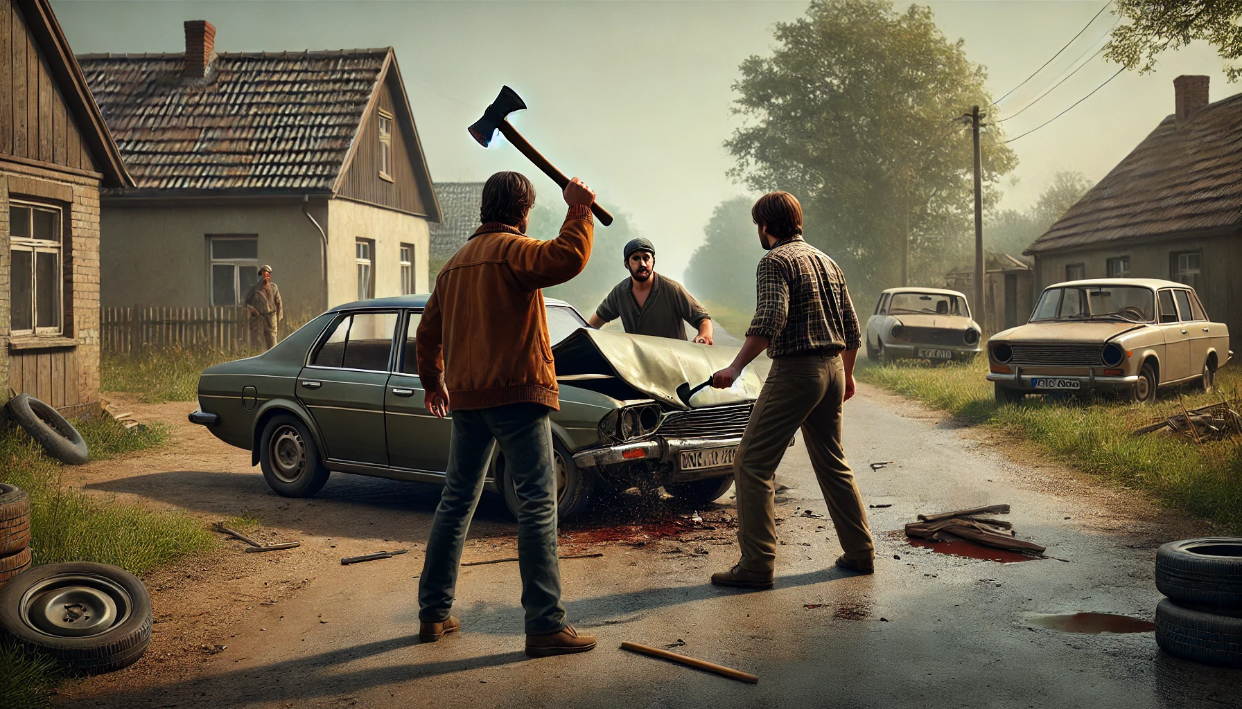 După ce s-au dat jos din autoturism, unul dintre inculpați a distrus cu un levier geamul portierei partea stângă față, iar celălalt a distrus cu un topor parbrizul și oglinda retrovizoare din partea dreaptă față.