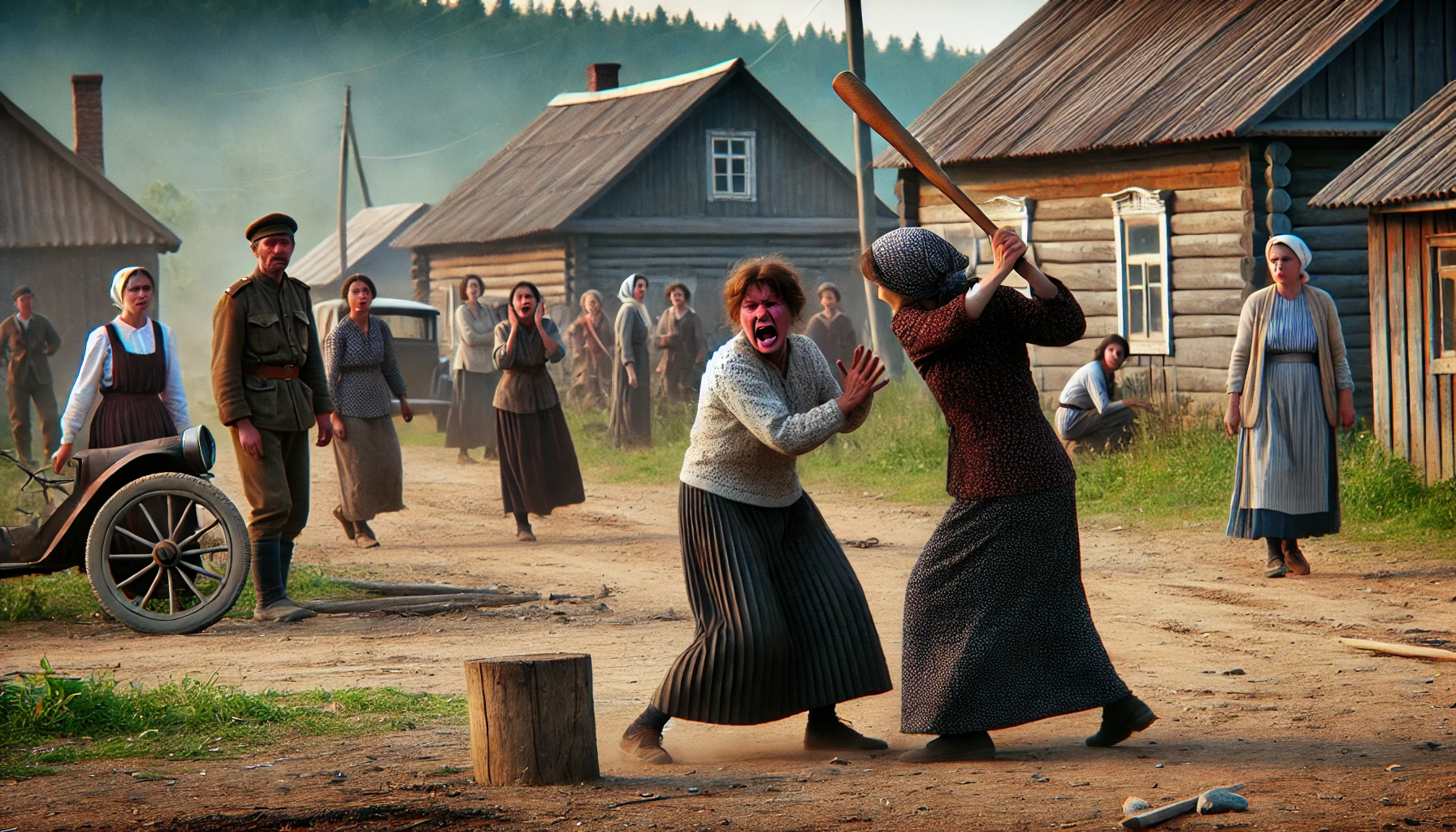 În apropierea magazinului din zonă, inculpata a luat din autoturism o bâtă din lemn ce avea cui într-un capăt şi s-a năpustit asupra persoanei vătămate, acesta din urmă fiind lovită cu bâta în zona sânului drept și peste mâna stângă, în zona degetelor. Pe urmă, una dintre suspecte ar fi prins victima de păr, lovind-o în același timp cu pumnul în zona capului.