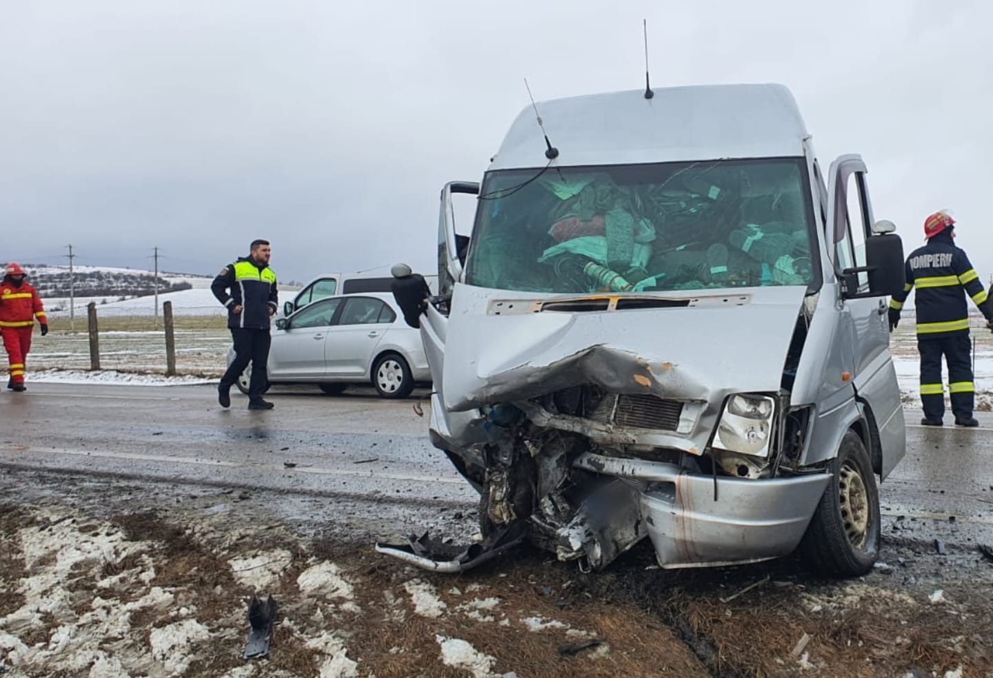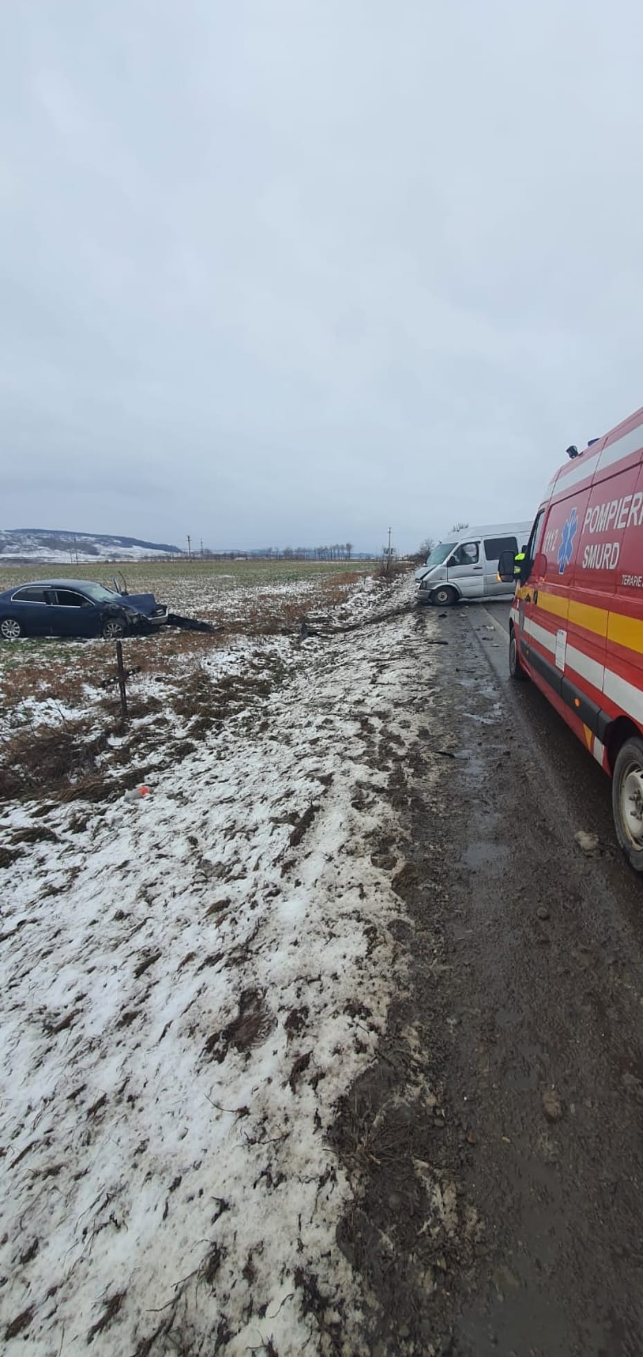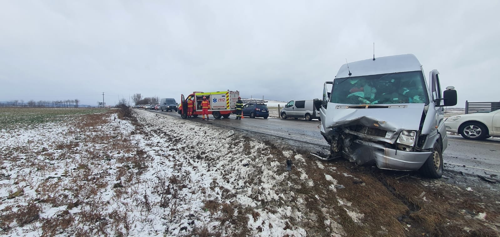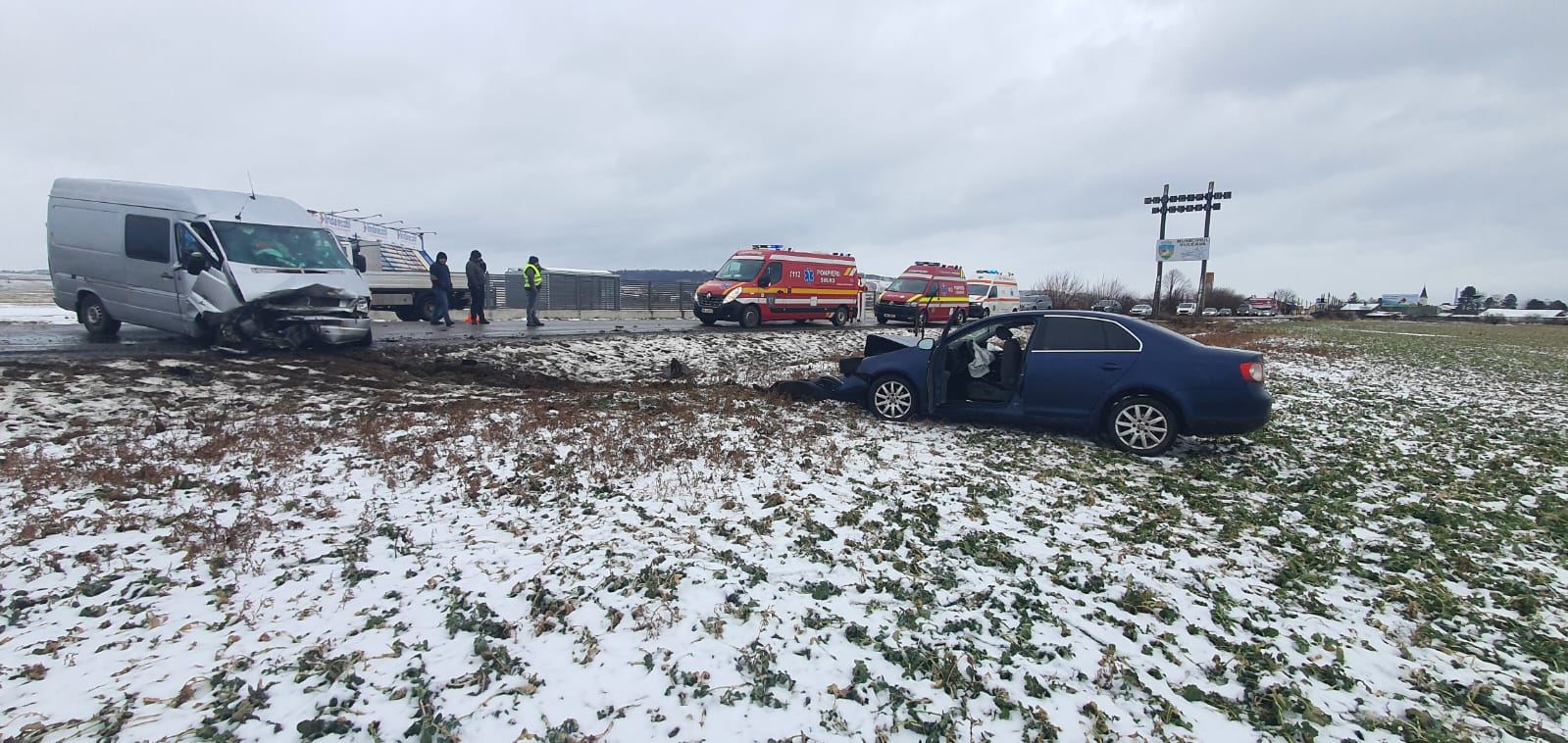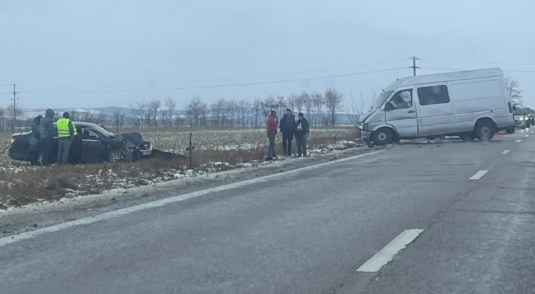 În urma coliziunii dintre un autoturism și o autoutilitară, au rezultat trei persoane care au necesitat îngrijiri medicale.