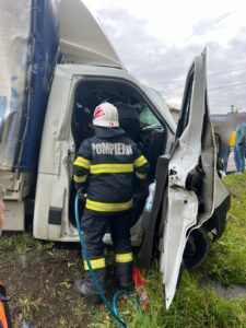 La fața locului intervin pompierii militari cu o autospecială cu accesorii pentru descarcerare și două ambulanțe SMURD, cu sprijinul a două echipaje SAJ.