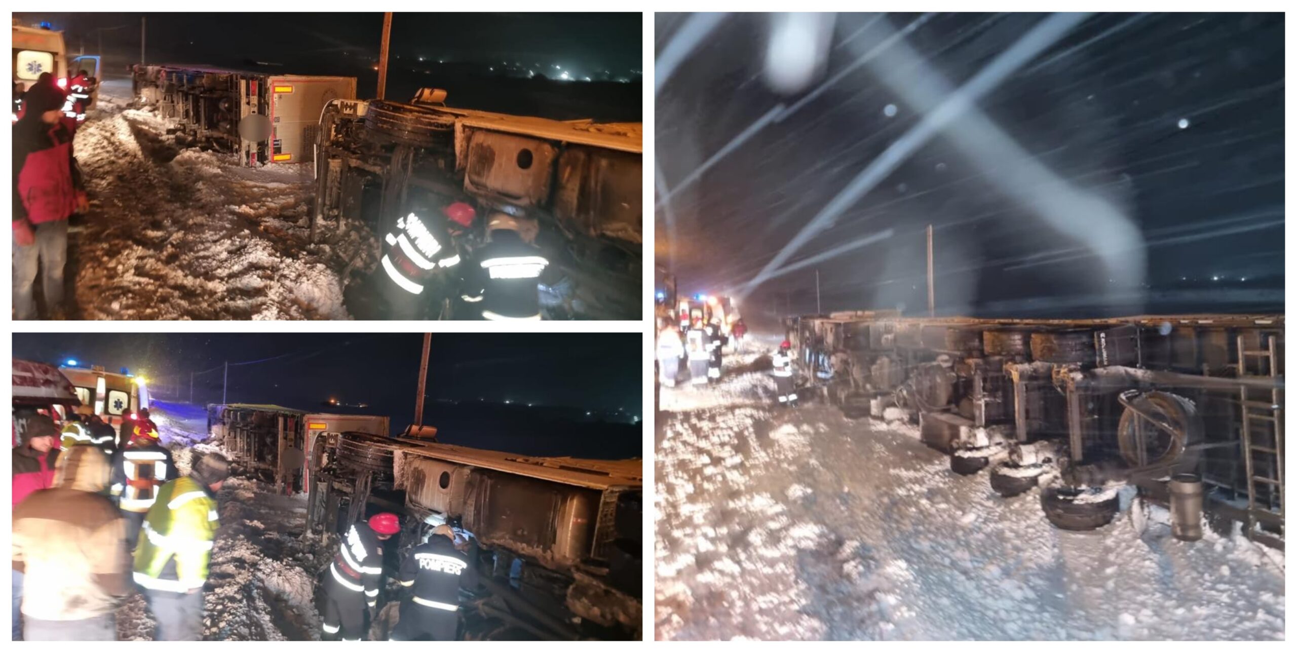 FOTO Cele două camioane încărcate cu semințe de floarea soarelui, care s-au răsturnat pe raza localității Grănicești erau conduse de doi turci