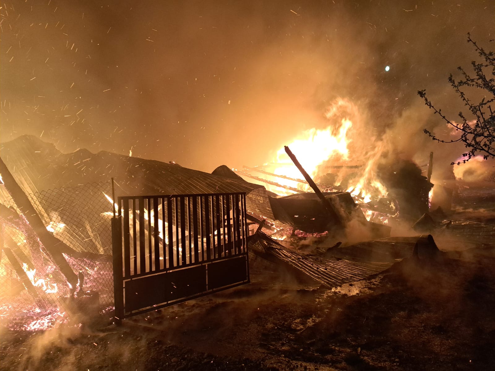 Au ars depozitul de materiale, pe o suprafață de aproximativ 150 de metri pătrați, și bunurile din interior (utilaje agricole, aproximativ 100 de baloți de paie, circa 150 metri cubi lemn de foc și 5 metri de cherestea.