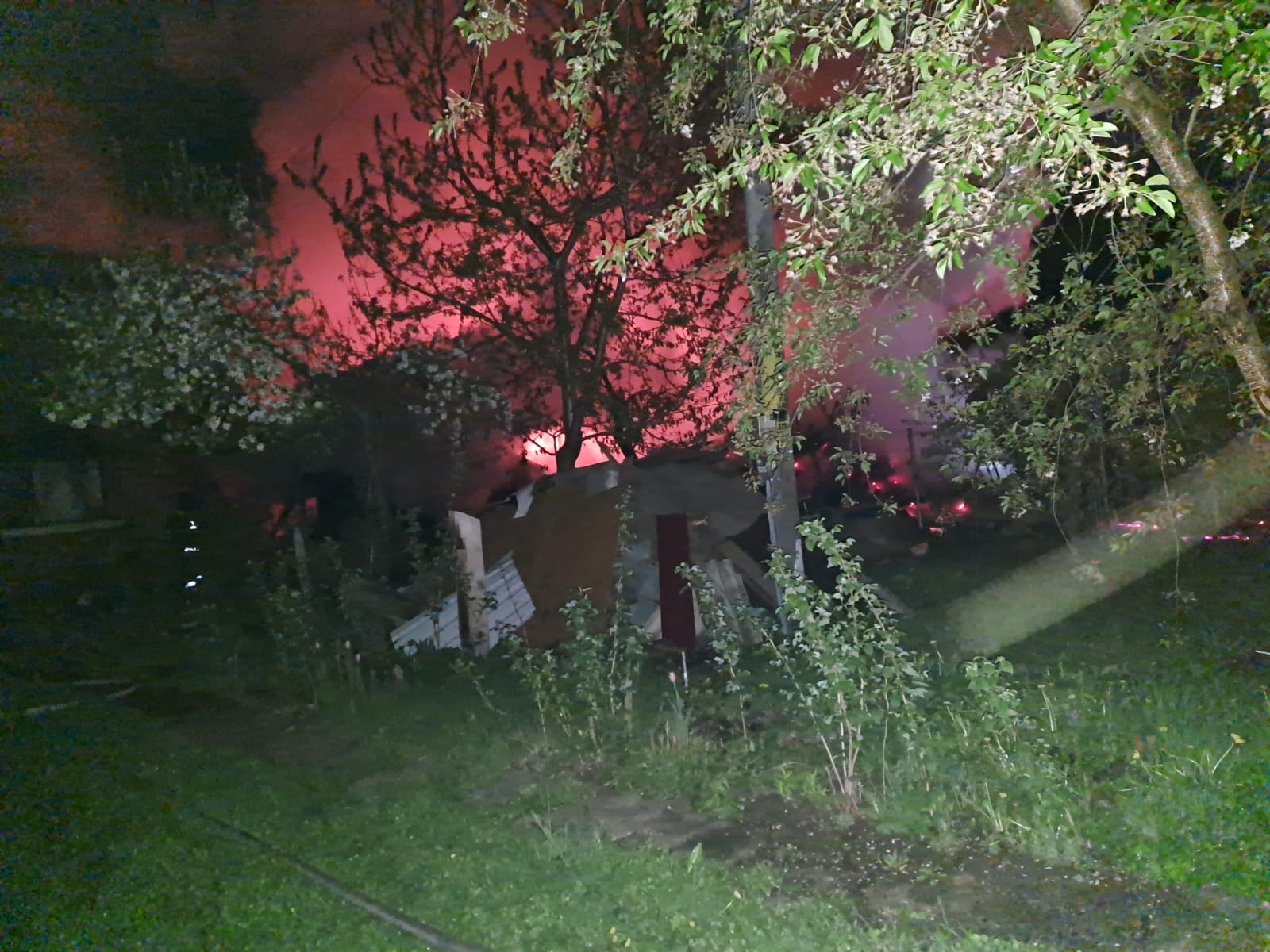 La sosirea echipajelor, ardea generalizat un depozit de materiale, construit din lemn, cu învelitoare din tablă, flăcările fiind extinse și la o gospodărie din imediata apropiere.