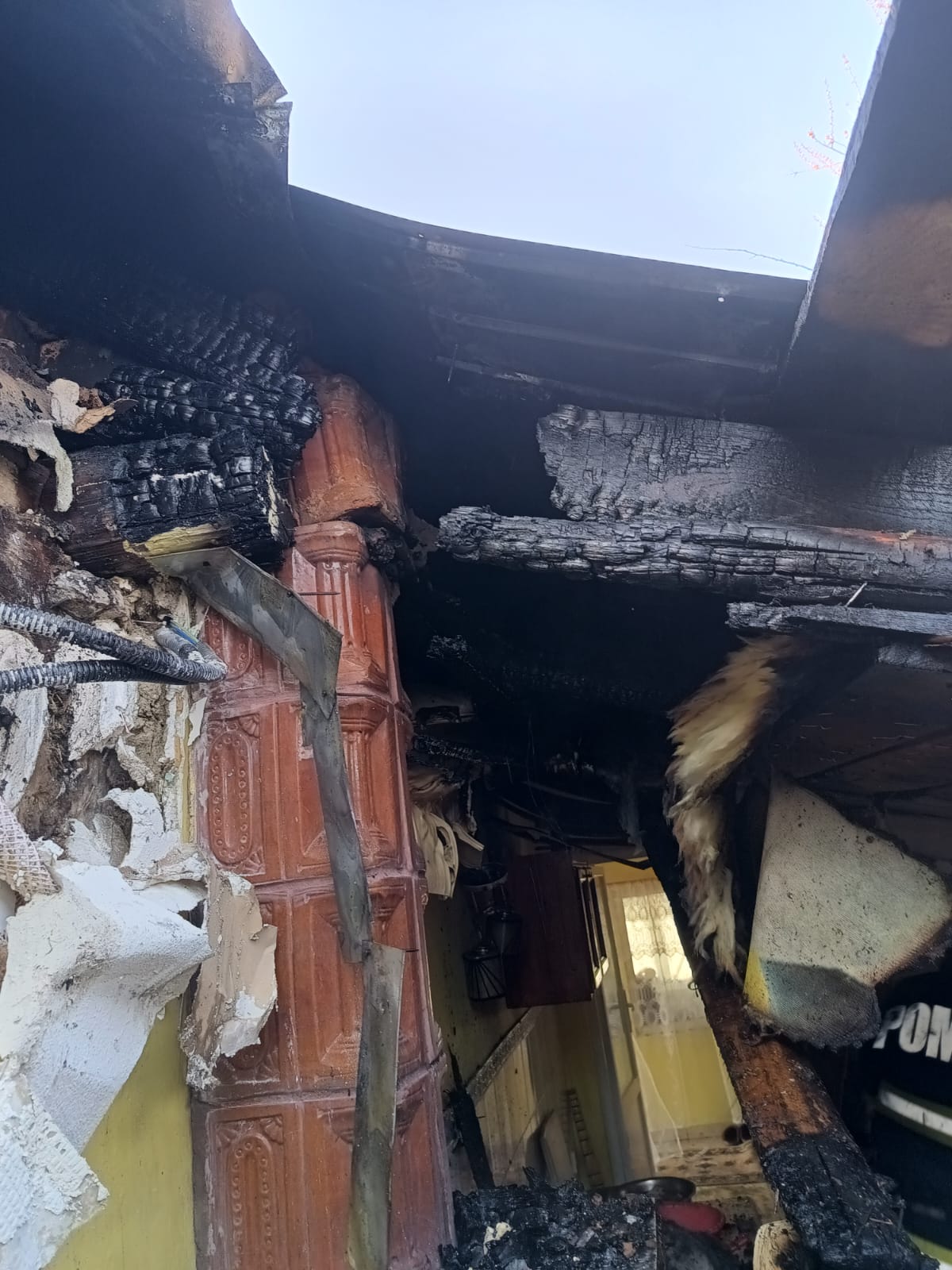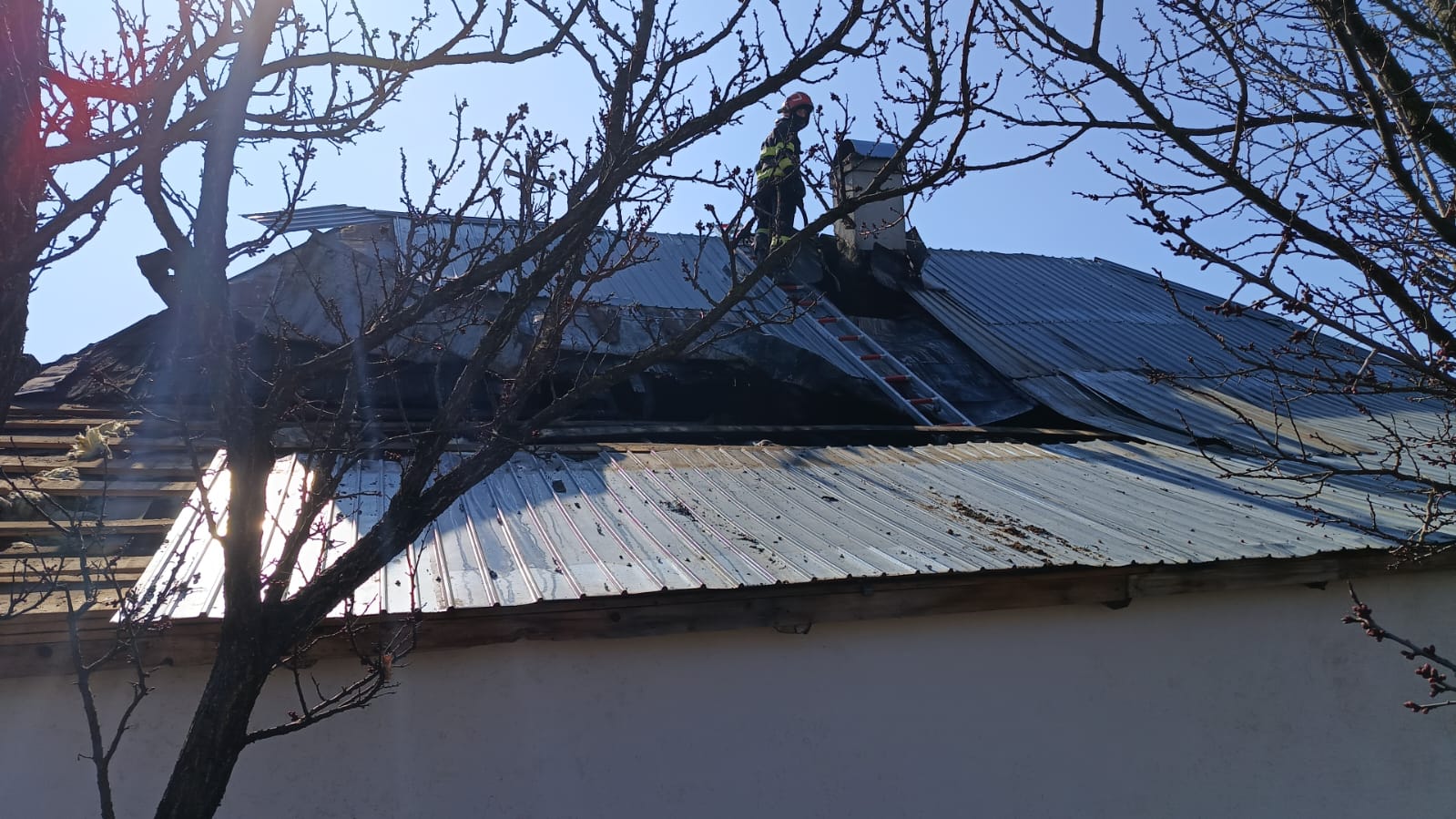 Au ars materiale combustibile din interiorul bucătăriei (mobilier, textile, elemente de tâmplărie și altele) și circa doi metri cubi de lemn pentru construcții. De asemenea, învelitoarea acoperișului (din tablă zincată) s-a degradat pe o suprafață de aproximativ 20 de metri pătrați.