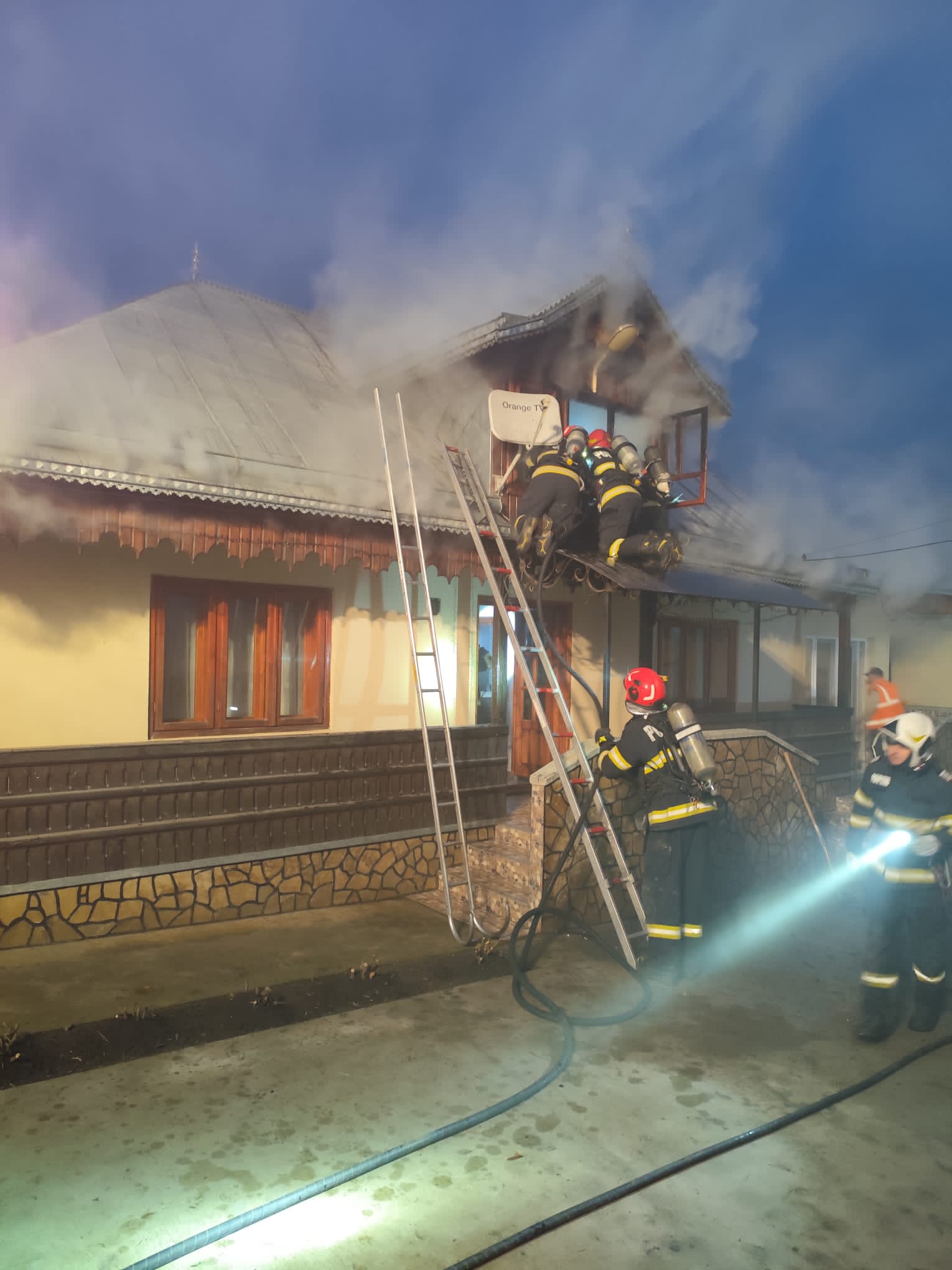 La sosirea echipajelor, incendiul se manifesta la nivelul acoperișului casei, cu pericol de propagare la întreaga construcție, dar și la o șură, corp comun cu locuința.