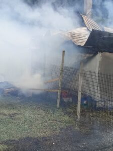 Au ars acoperișul casei de locuit, o magazie, acoperișul adăpostului de animale și o parte din acoperișul depozitului de lemne, toate pe o suprafață de aproximativ 140 de metri pătrați. S-au degradat elemente de tâmplărie, obiecte de mobilier, o butelie, aparate electrocasnice, diferite echipamente tehnice de lucru și alte bunuri.
