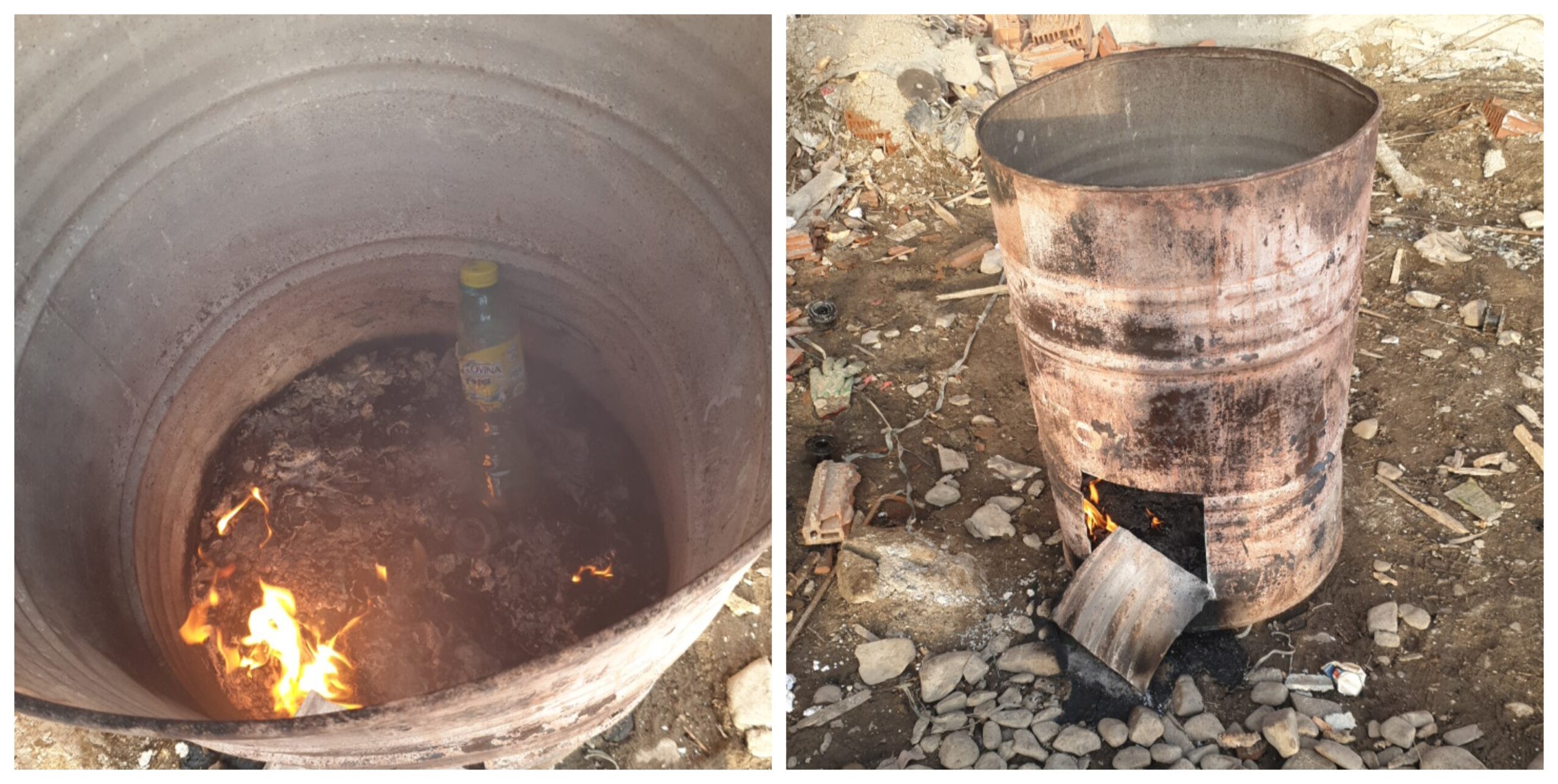 Aceștia au constatat că angajații agentului economic incendiau deșeuri de plastic (PET-uri) într-un butoi metalic.