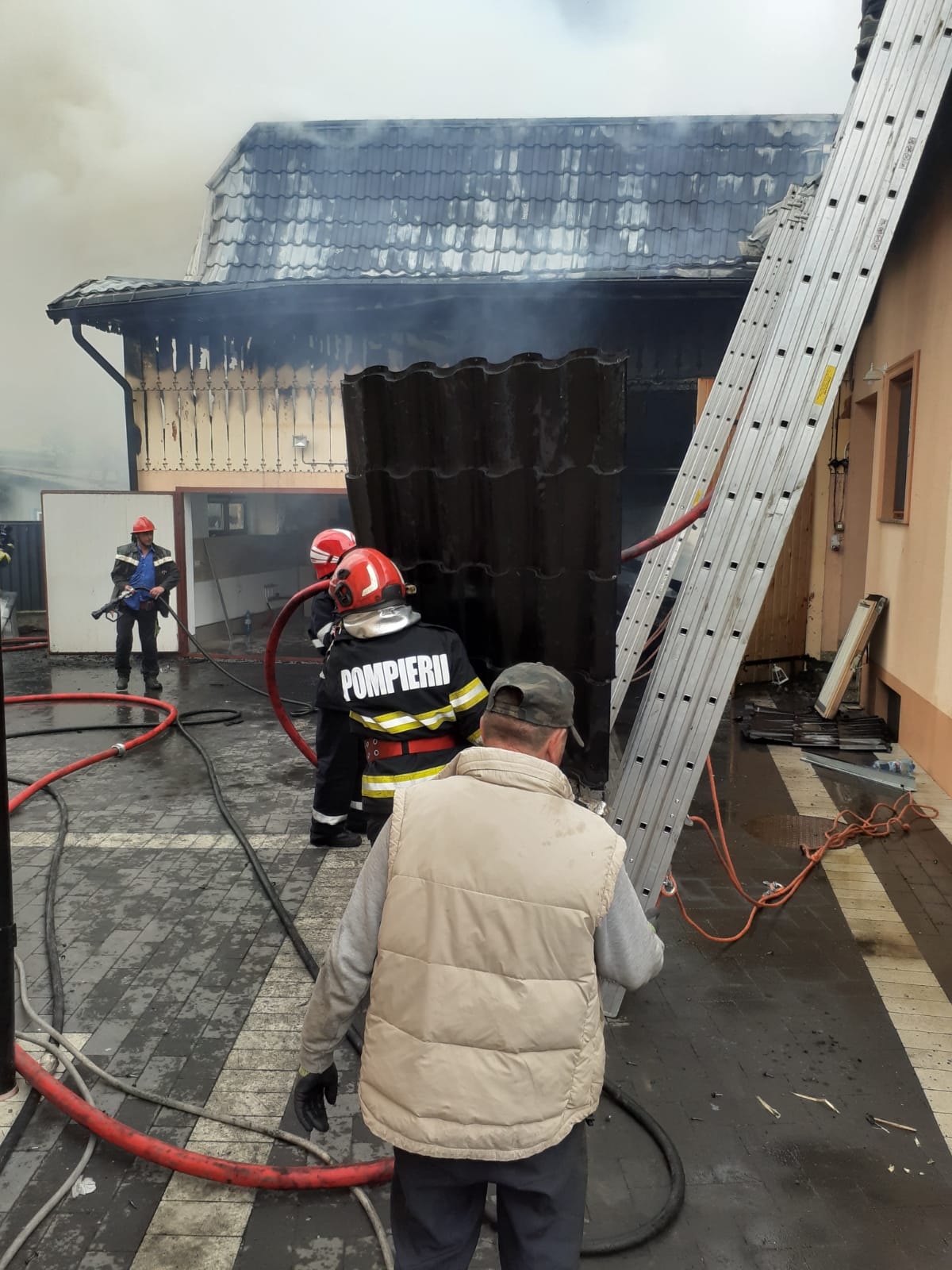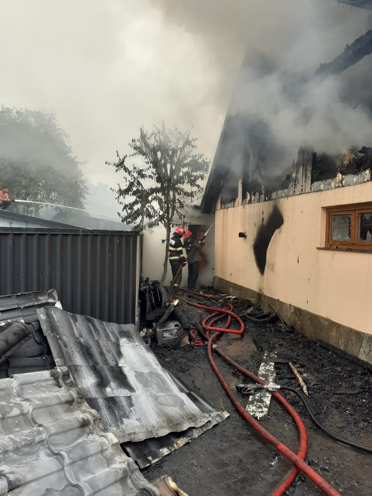 La gospodăria învecinată, au ars anexele gospodărești și acoperișul bucătăriei de vară, pe o suprafață totală de aproximativ 400 de metri pătrați. Au mai ars circa 60 de metri cubi lemn de foc, patru drujbe, două generatoare două mașini de tuns iarba și altele. Pompierii au salvat casa proprietarului și o locuință învecinată.
