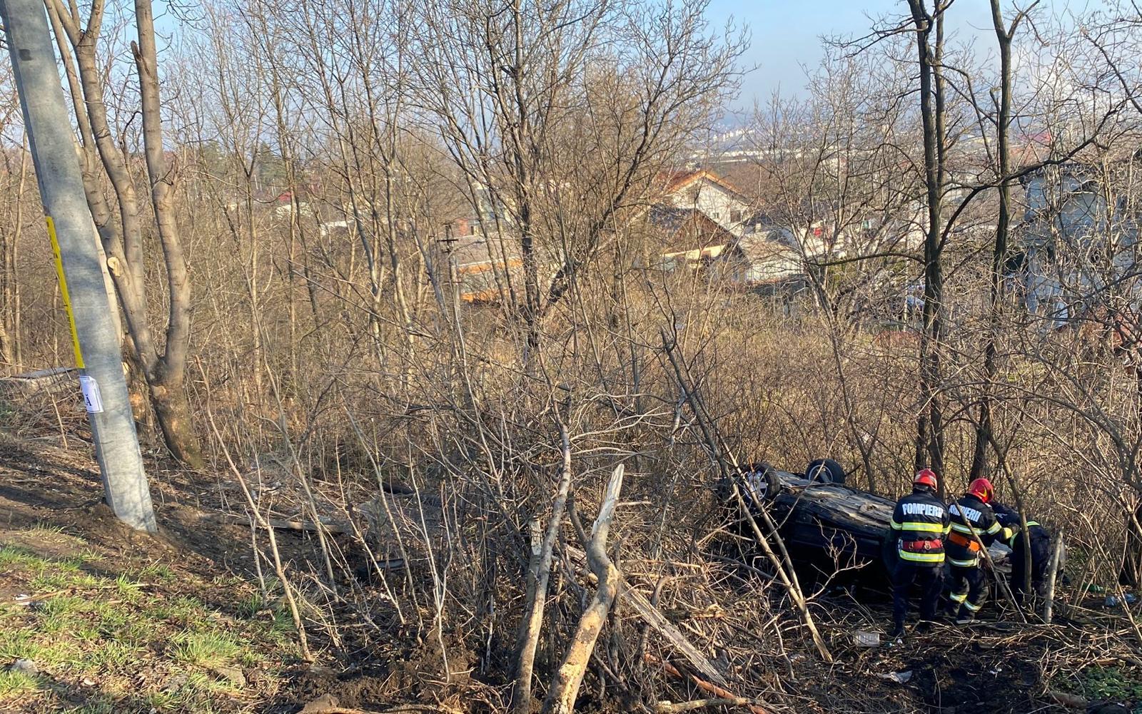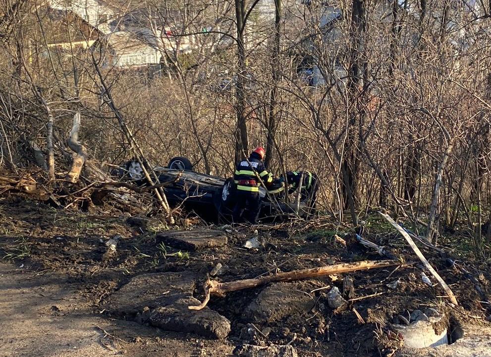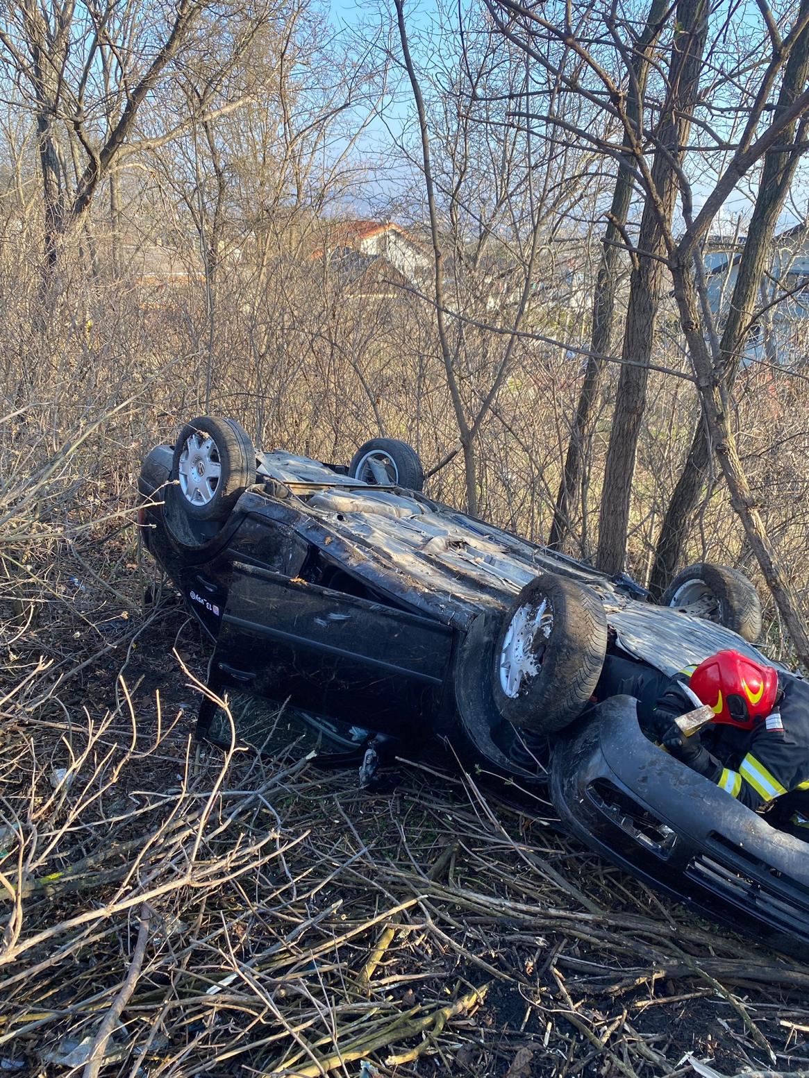 FOTO Un bărbat s-a răsturnat cu mașina pe Calea Unirii, în zona cu cel mai ridicat risc de accidente rutiere din Suceava. Soția și copilul acestuia au fost răniți