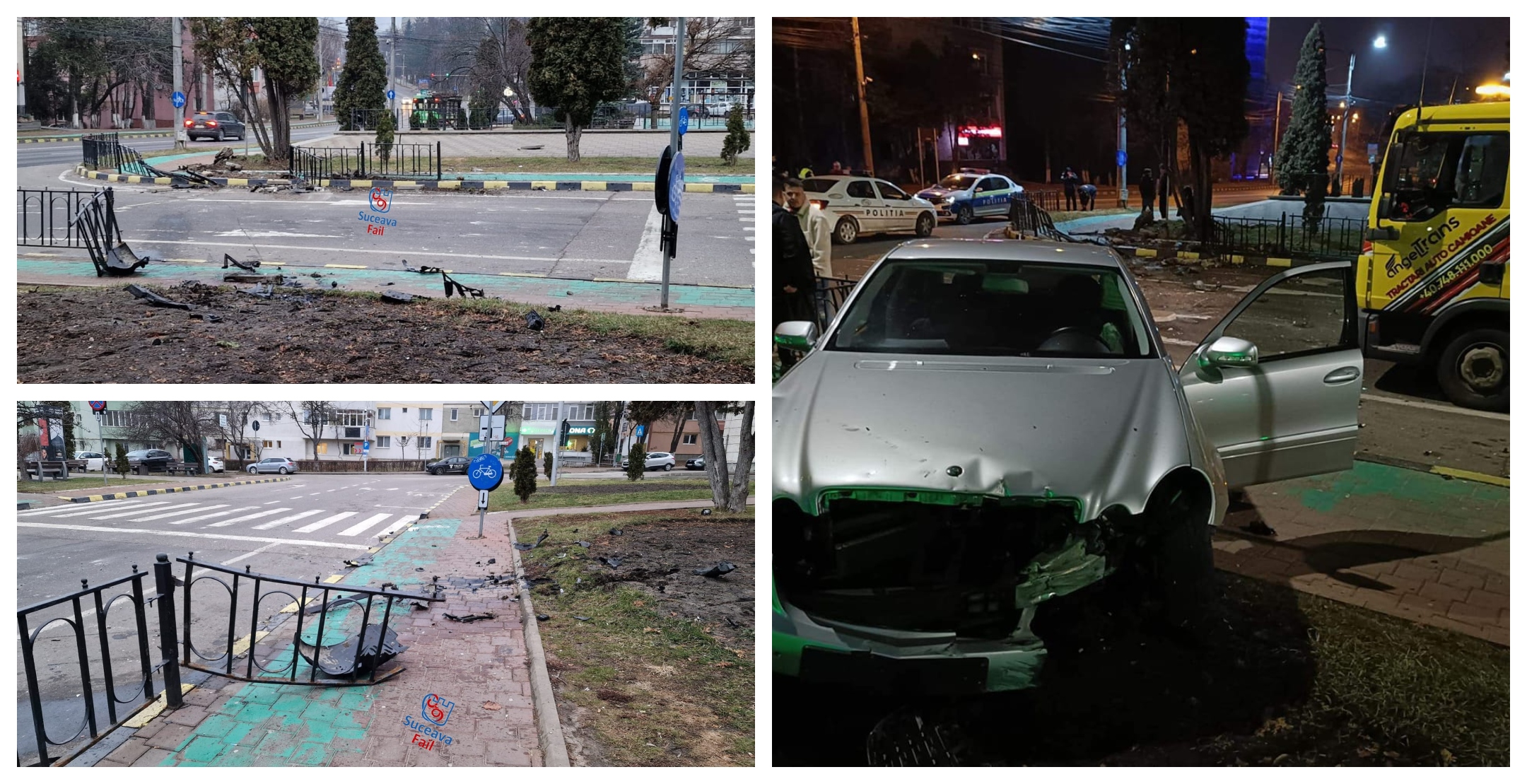 În zona intersecției cu strada Mihai Viteazu, tânărul a pierdut controlul asupra direcție de mers, părăsind suprafața carosabilă și intrând în coliziune cu bordura și gardul de protecție al trotuarului amplasat în proximitatea intersecției.