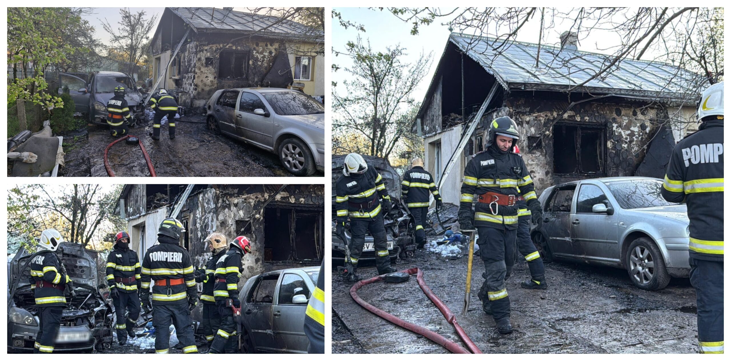 În urma incendiului au fost înregistrate pagube materiale importante, fiind afectată locuința și două autoturisme parcate în curte.