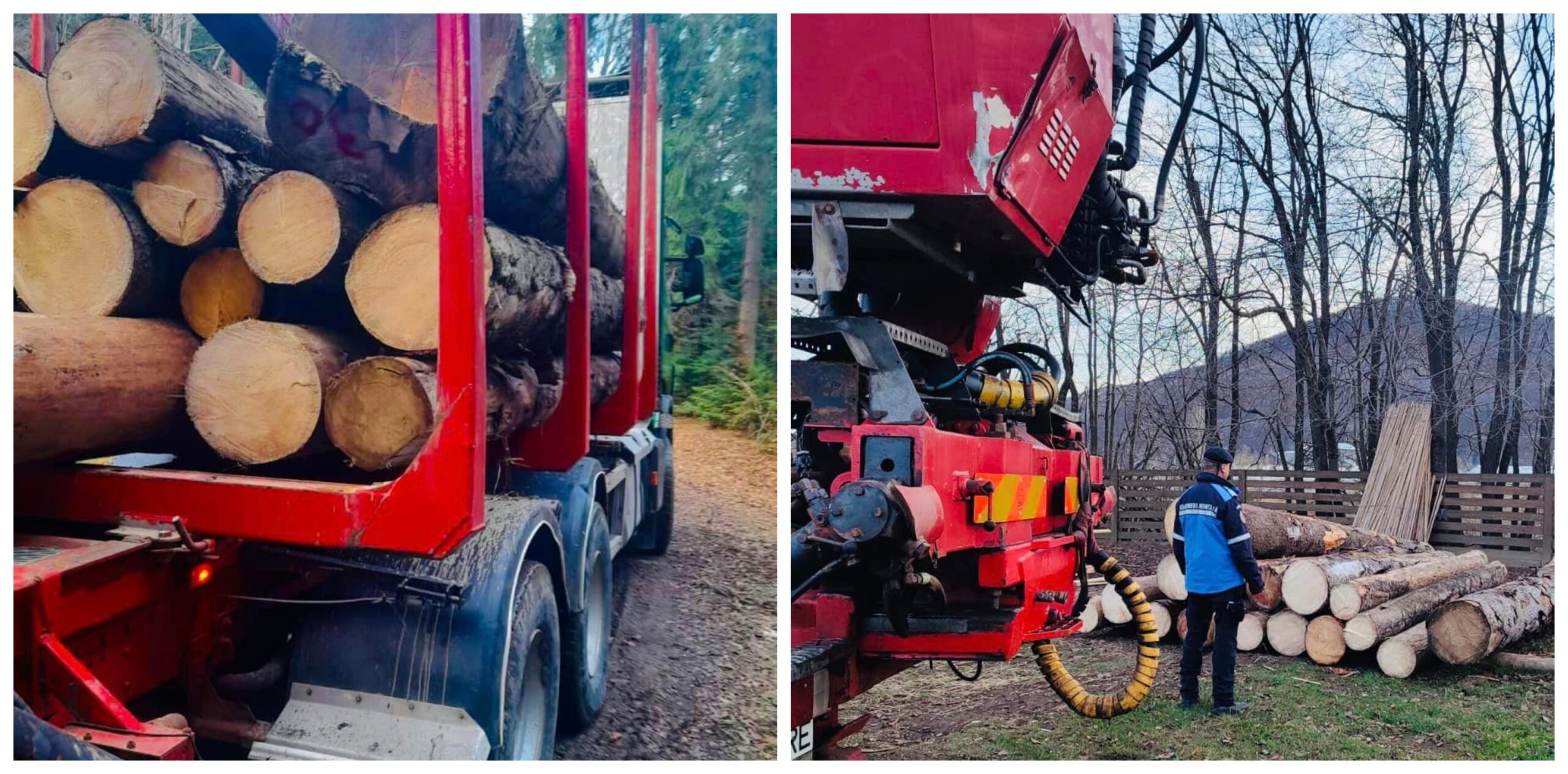 În urma verificărilor efectuate, jandarmii montani au constatat faptul că numitul P.C., în vârstă de 47 de ani, transporta cantitatea de 7,15 mc, buștean gater – specia molid, fără aviz de însoțire și documente de proveniență. Valoarea totală a materialului lemnos este de 4.175,6 lei.