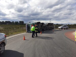 Astăzi, în jurul orei 15.30, o betonieră s-a răsturnat în municipiul Rădăuți, într-un sens giratoriu din zona centurii spre Dornești.