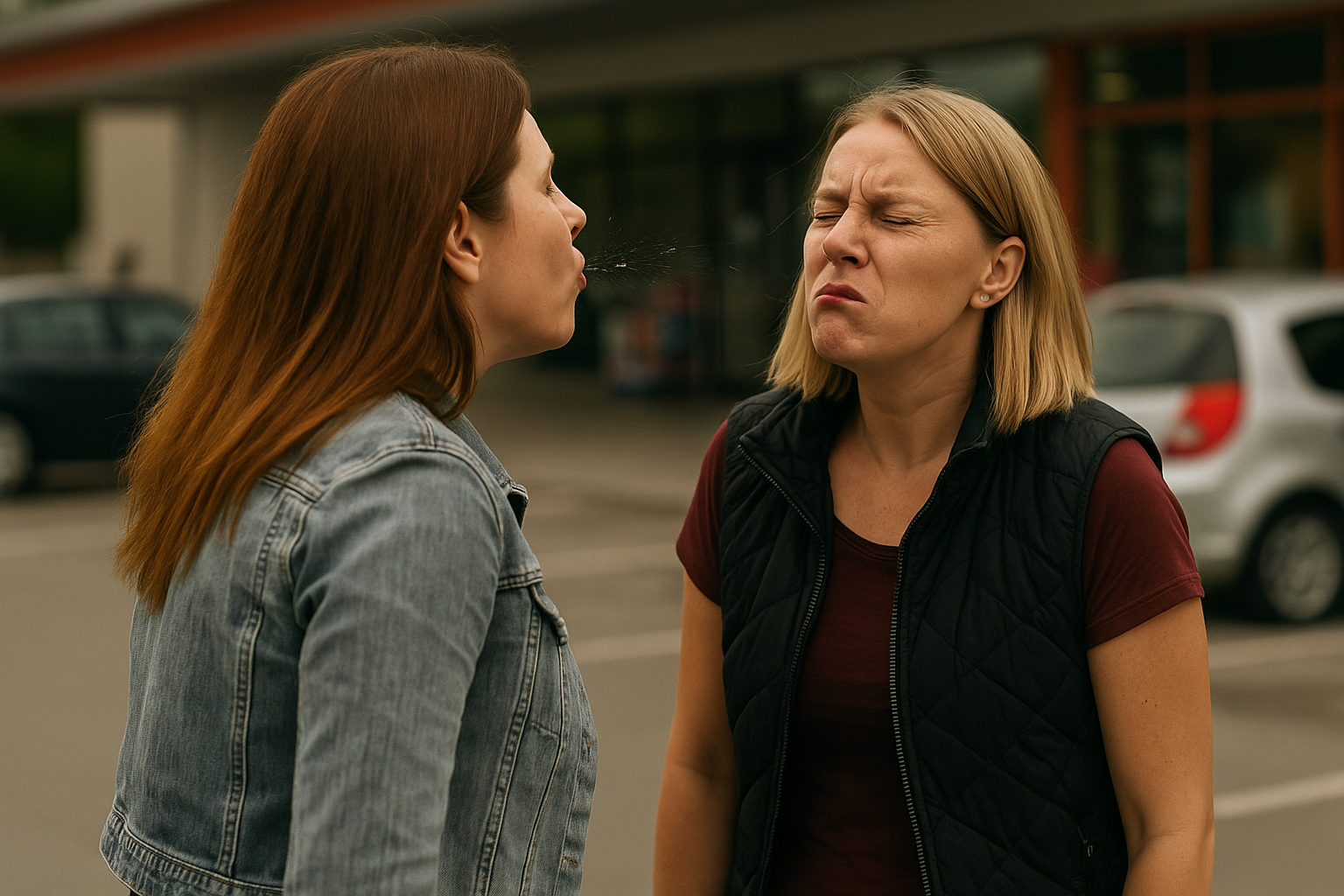 Incidentul a avut loc în parcarea unui magazin alimentar din localitate, unde, pe fondul unui conflict mai vechi, o femeie ar fi abordat-o pe reclamantă. După un schimb de replici tensionate, reclamanta a fost scuipată și lovită cu palma peste față.
