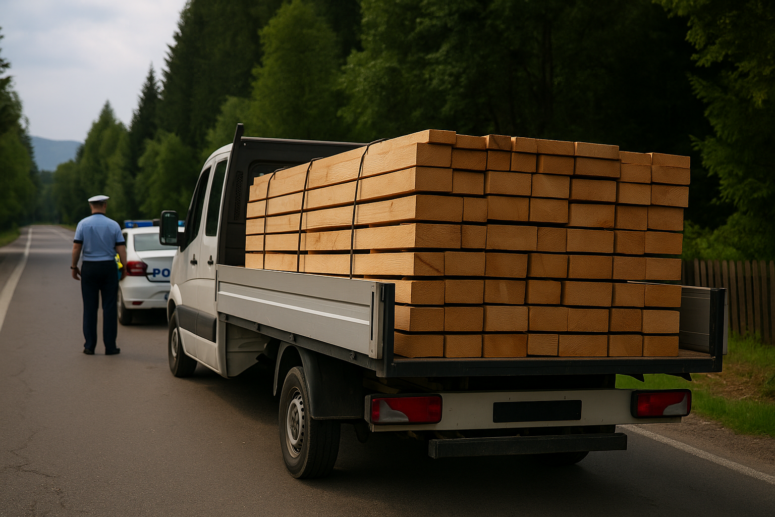 La data de 10 mai 2025, ora 09.25, lucrătorii din cadrul Secției 11 Poliție Rurală Pojorâta, aflați în exercitarea atribuțiilor de serviciu pe DJ 175 din comuna Pojorâta, județul Suceava, au efectuat semnal regulamentar de oprire unei autoutilitare marca Volkswagen Crafter care transporta material lemnos.