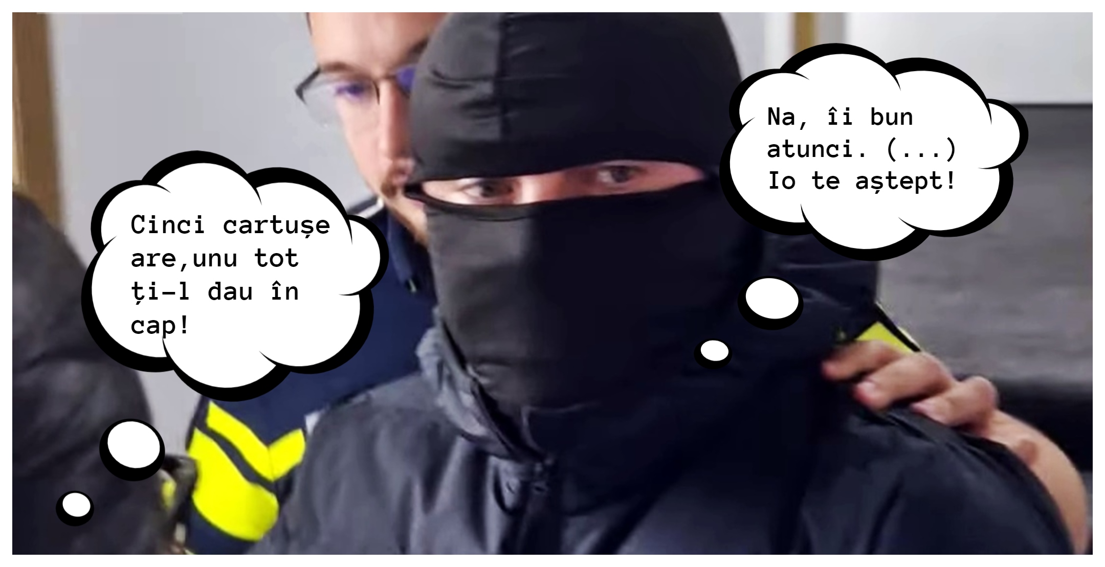 B.: Cinci cartuşe are, unu tot ţi-l dau în cap.