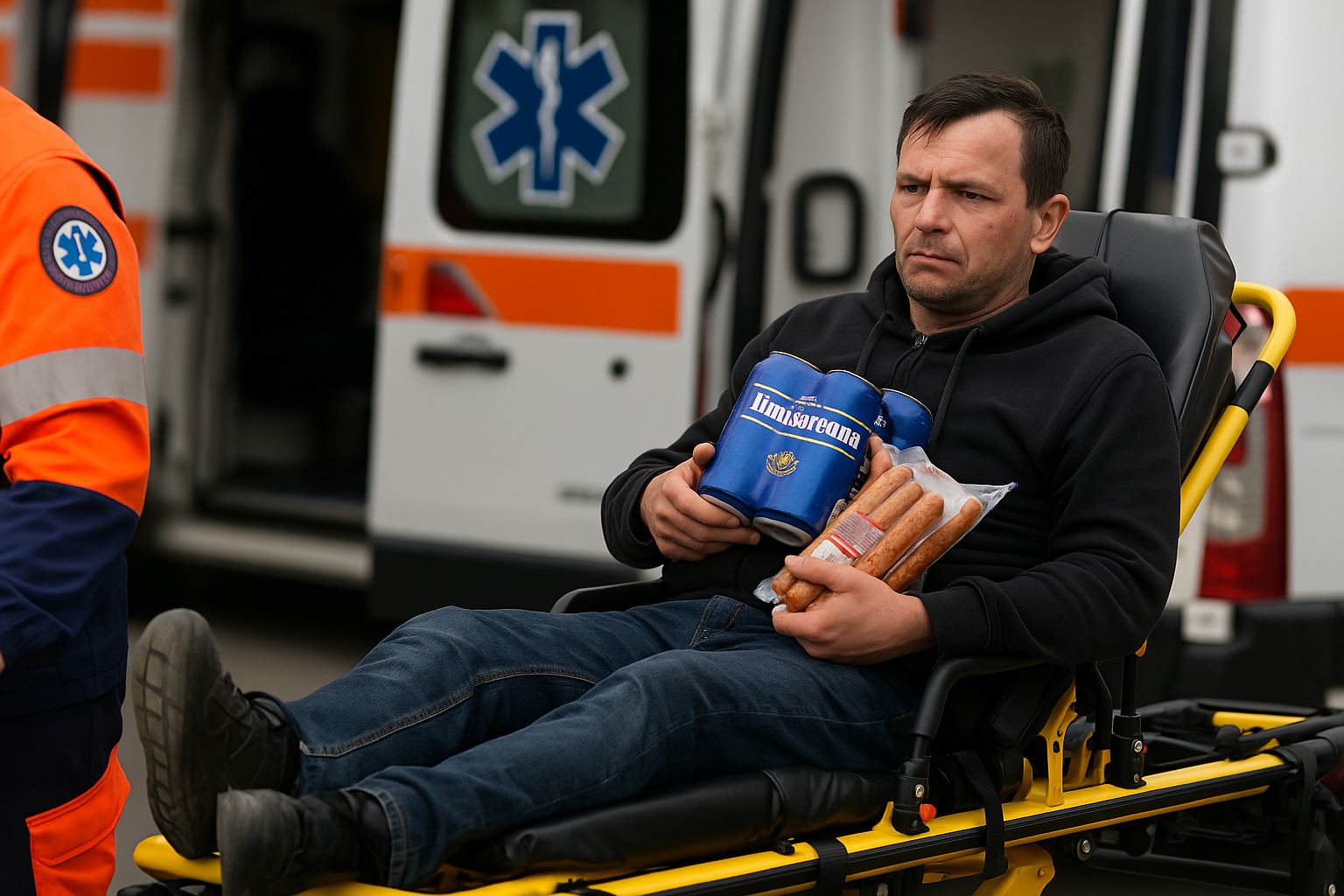 Polițiștii ajunși la fața locului au constatat că bărbatul a luat de pe raft un bax cu bere Timișoreana (6 doze a câte 500 ml) și cârnați sticks de pui, pe care a încercat să le scoată din magazin fără să le plătească. După ce a trecut de casa de marcat, bărbatul a fugit, dar în timpul alergării a căzut și s-a lovit la piciorul stâng.