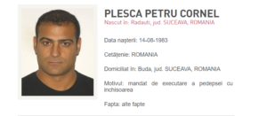 Petru Cornel Pleșca (40 de ani), născut în municipiul Rădăuți și domiciliat în localitatea Buda, este dat în urmărire națională, după ce polițiștii nu au reușit să-l găsească pentru a-l introduce în penitenciar.