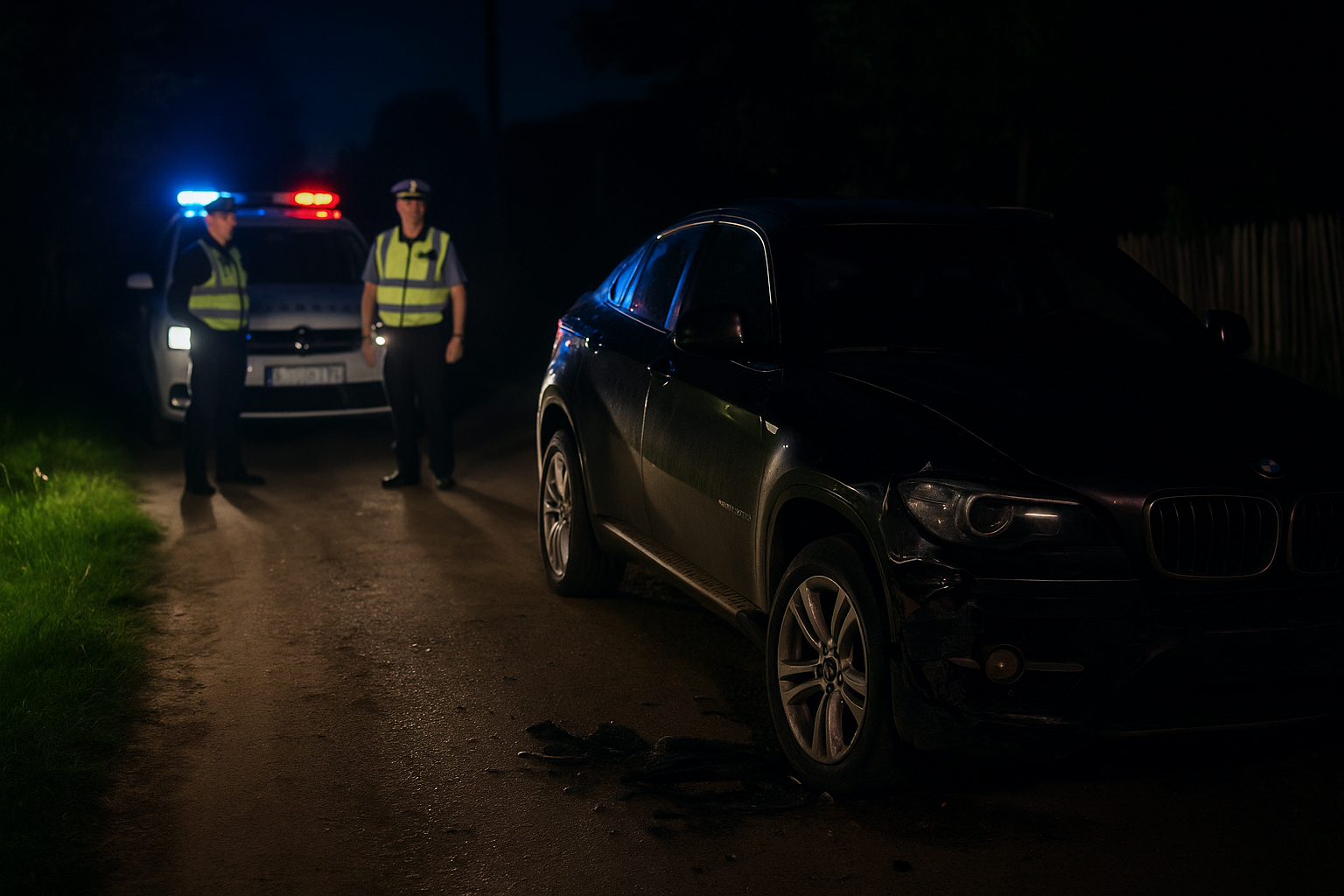 La fața locului, echipajul de poliție a constatat că cele sesizate se confirmă: un autoturism marca BMW X6, condus de un tânăr de 29 de ani, a intrat în coliziune cu un Volkswagen Tiguan, parcat regulamentar pe partea dreaptă a drumului.