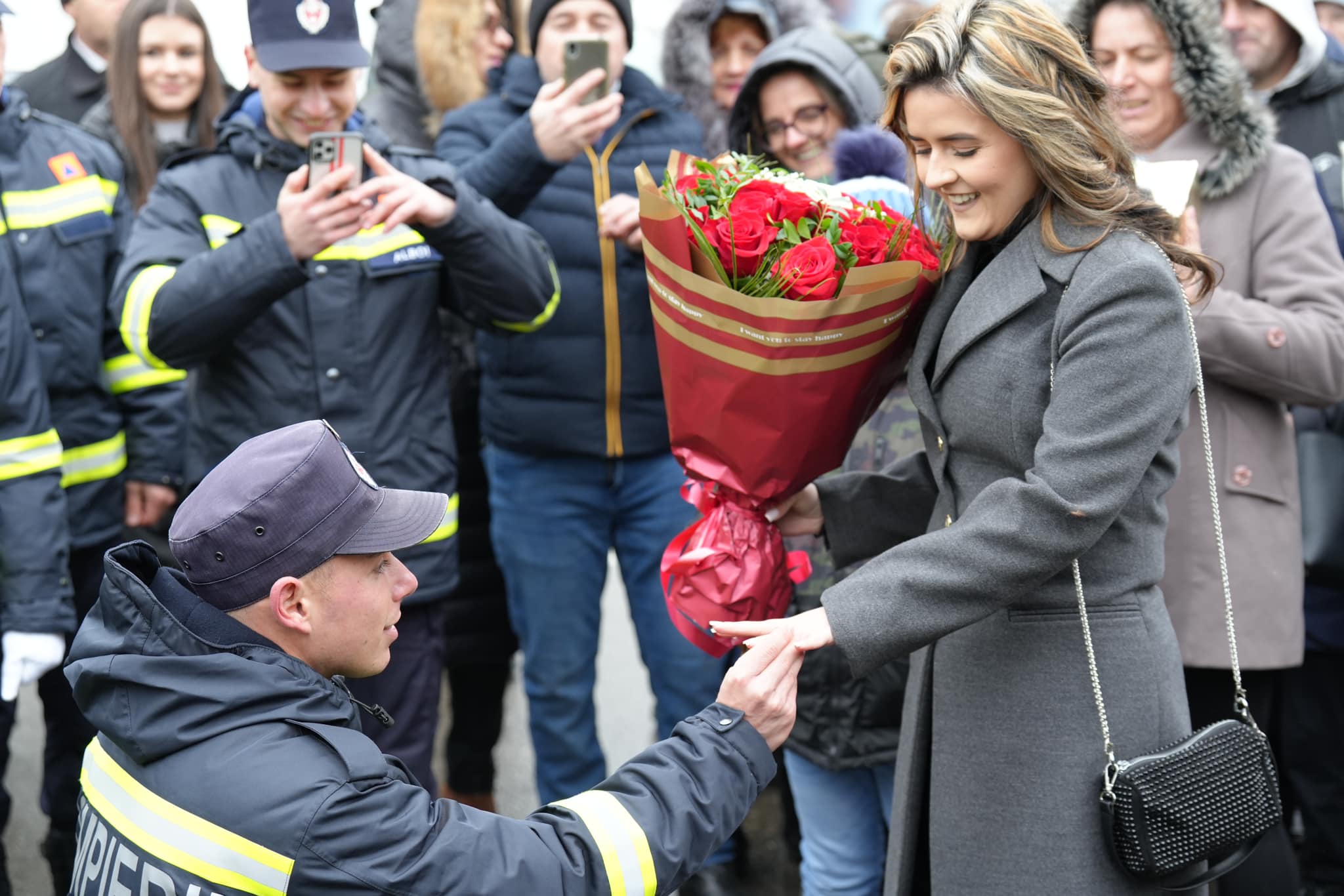 „Florin este unul dintre ei. Mai avea o misiune de dus, însă, la bun sfârșit. Cererea în căsătorie a iubitei sale. Ajutat de colegii săi, care au format un cerc în fața Oliviei, Florin i-a adresat întrebarea care marchează începutul vieții în doi: „Vrei sa fii soția mea?” Surprinsă și fericită, Olivia nu a ezitat să spună din toată inima un mare „DA”. Despre emoția trăită, vorbesc imaginile… Felicitări Florin și Olivia! Vă dorim casă de piatră”, a transmis ISU Suceava.
