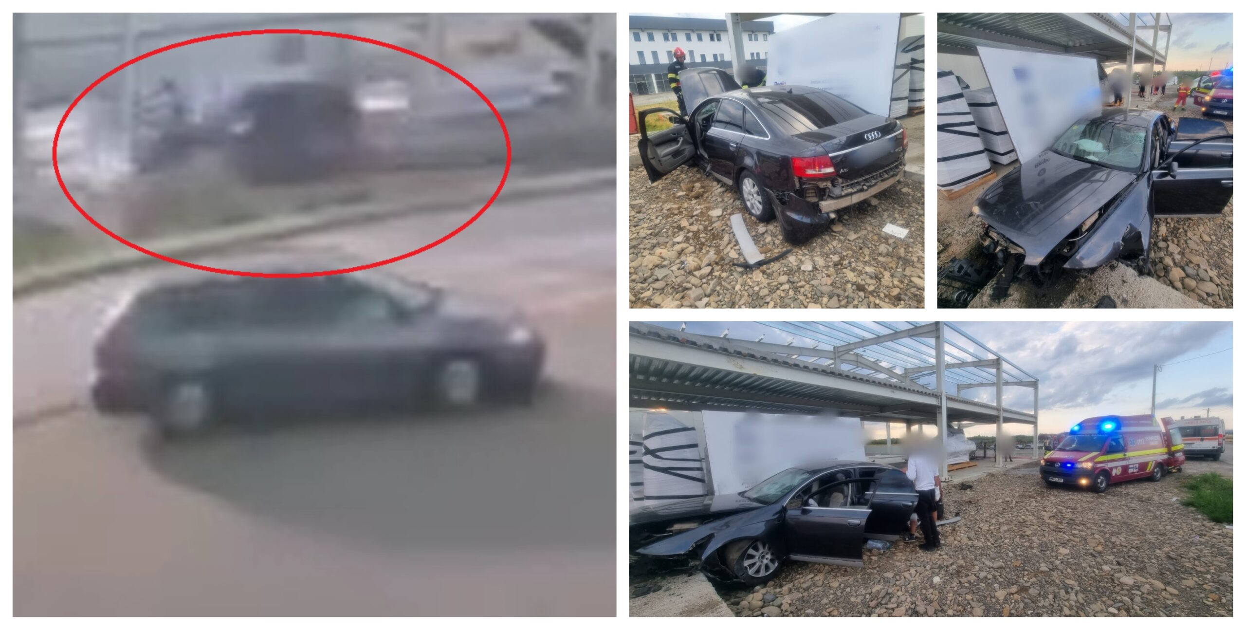 În spațiul public a apărut o filmare cu momentul în care un tânăr de 18 ani a ieșit cu mașina de pe carosabil și s-a oprit într-o temelie de beton.